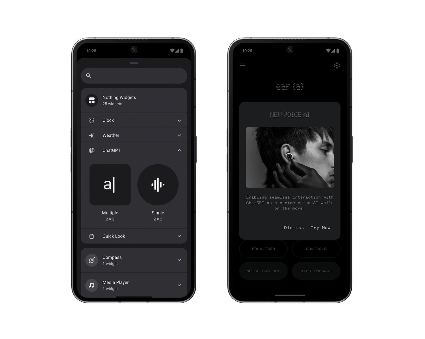 音声を使って、EarおよびEar (a)でチャットGPTにアクセスすることができます。Nothing Xアプリを通じて設定します。Ear (1)、Ear (2) およびEar (stick)にも近日対応予定。
